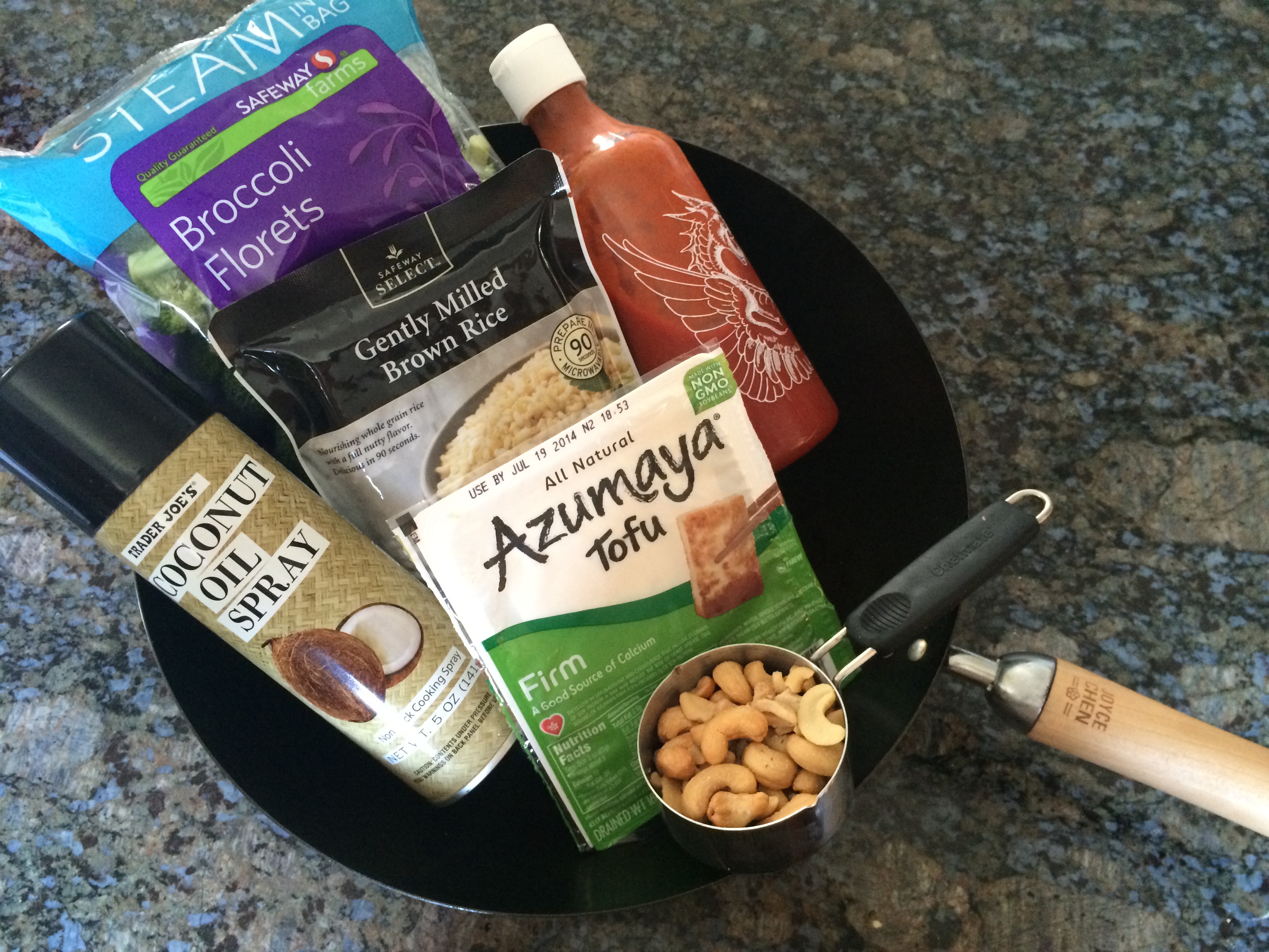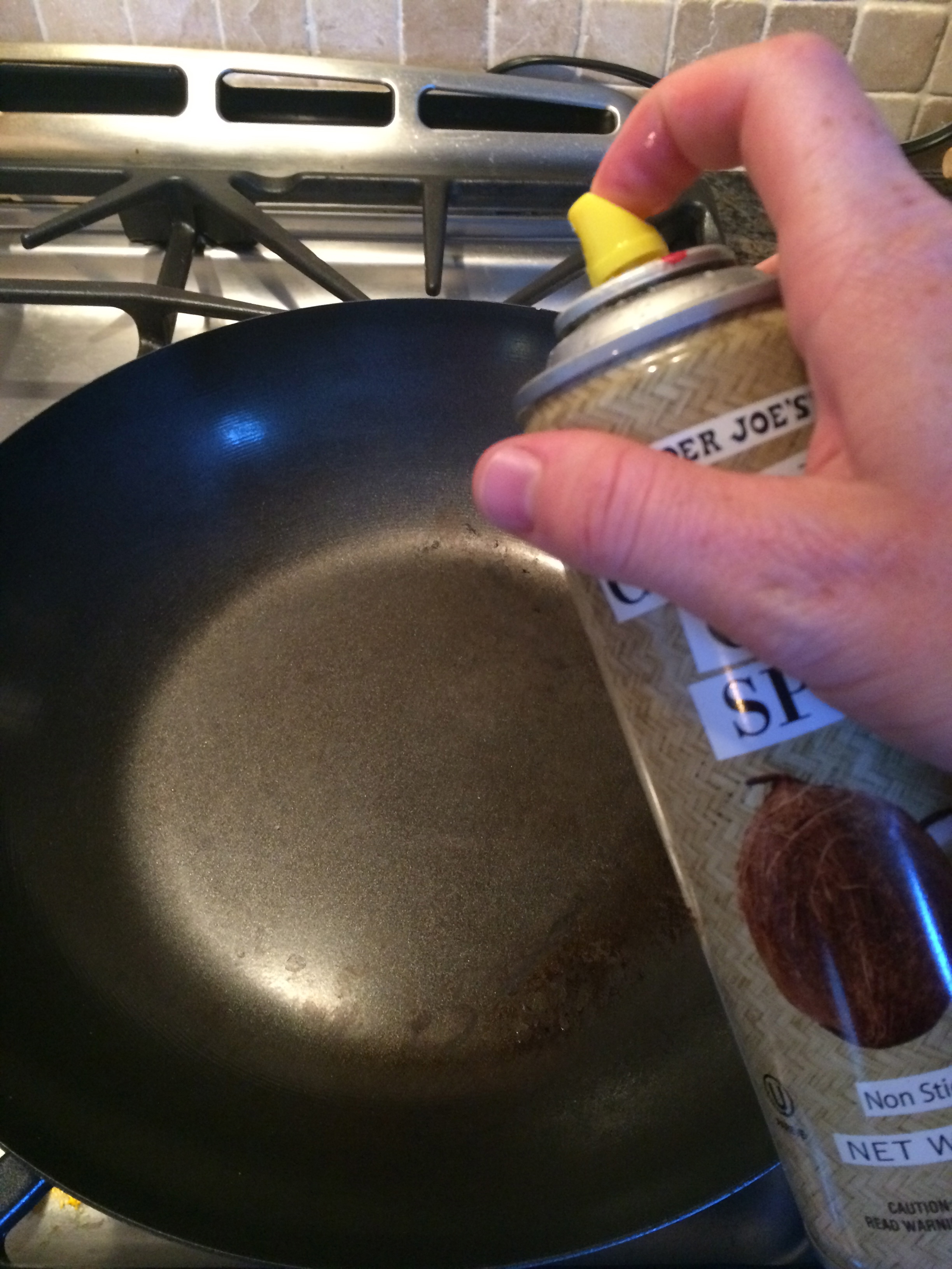 Turn on the stove to “high”, and place your wok on top of the stove. A wok is an amazing addition to any kitchen. It’s a large round pan used traditionally in many types of Chinese cooking. I like it because it’s light, holds a lot of food, and cooks everything really quickly. Spritz some coconut oil spray on the wok, and let heat up. (If you don’t have a wok, you can use any large pan. If you like other oil, use it!)