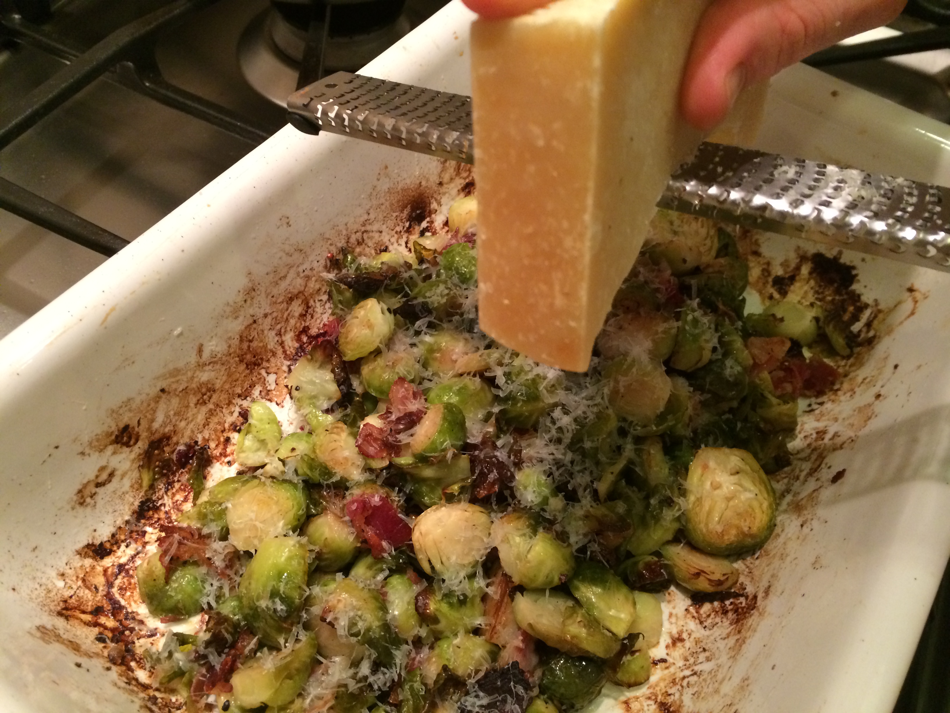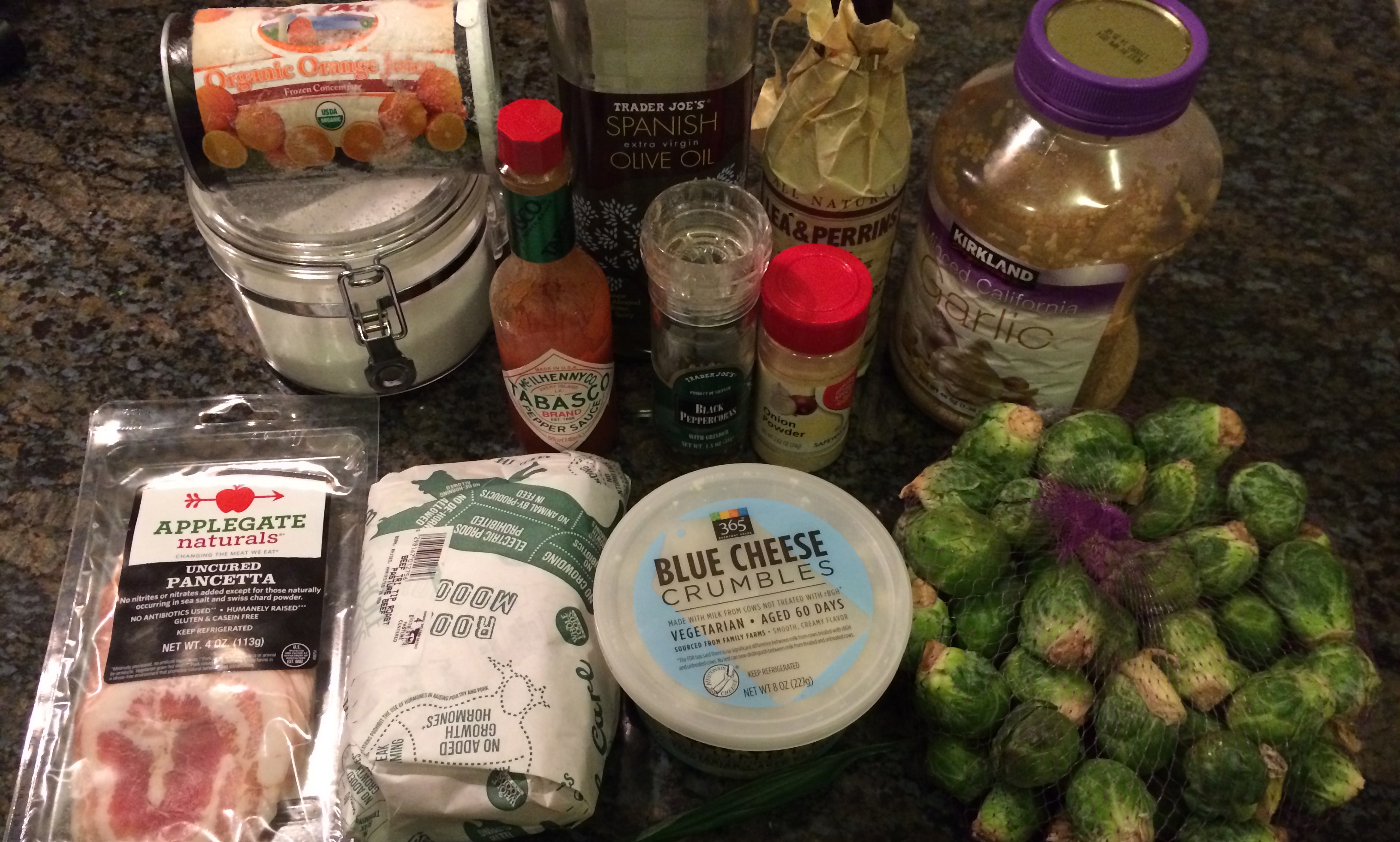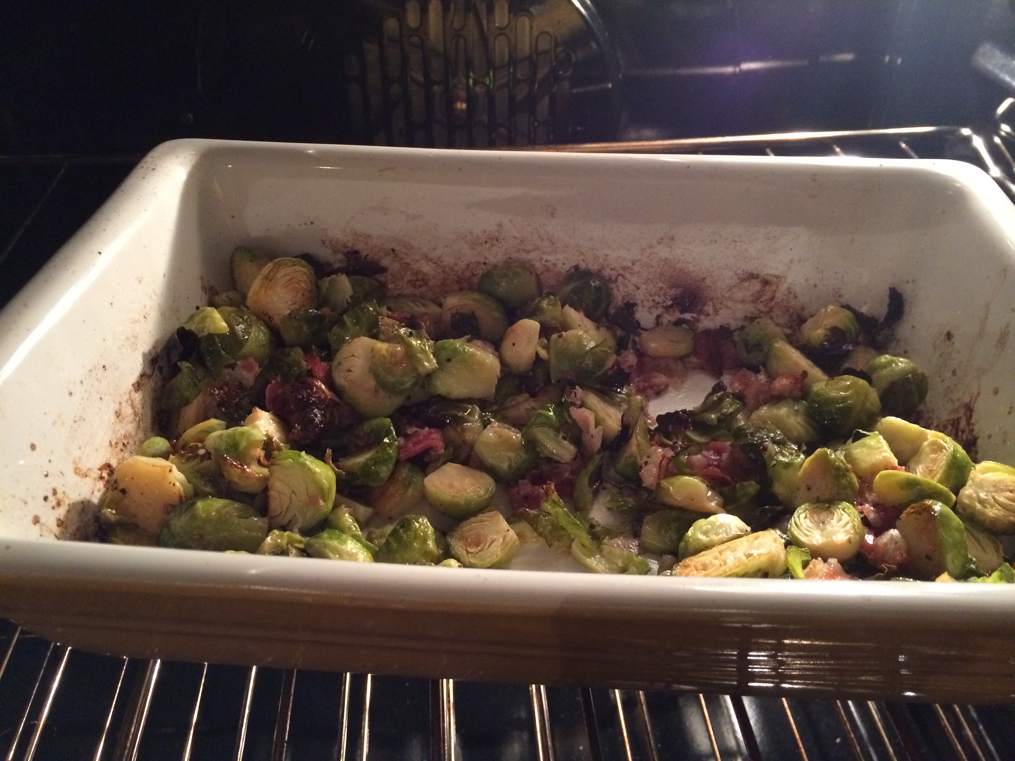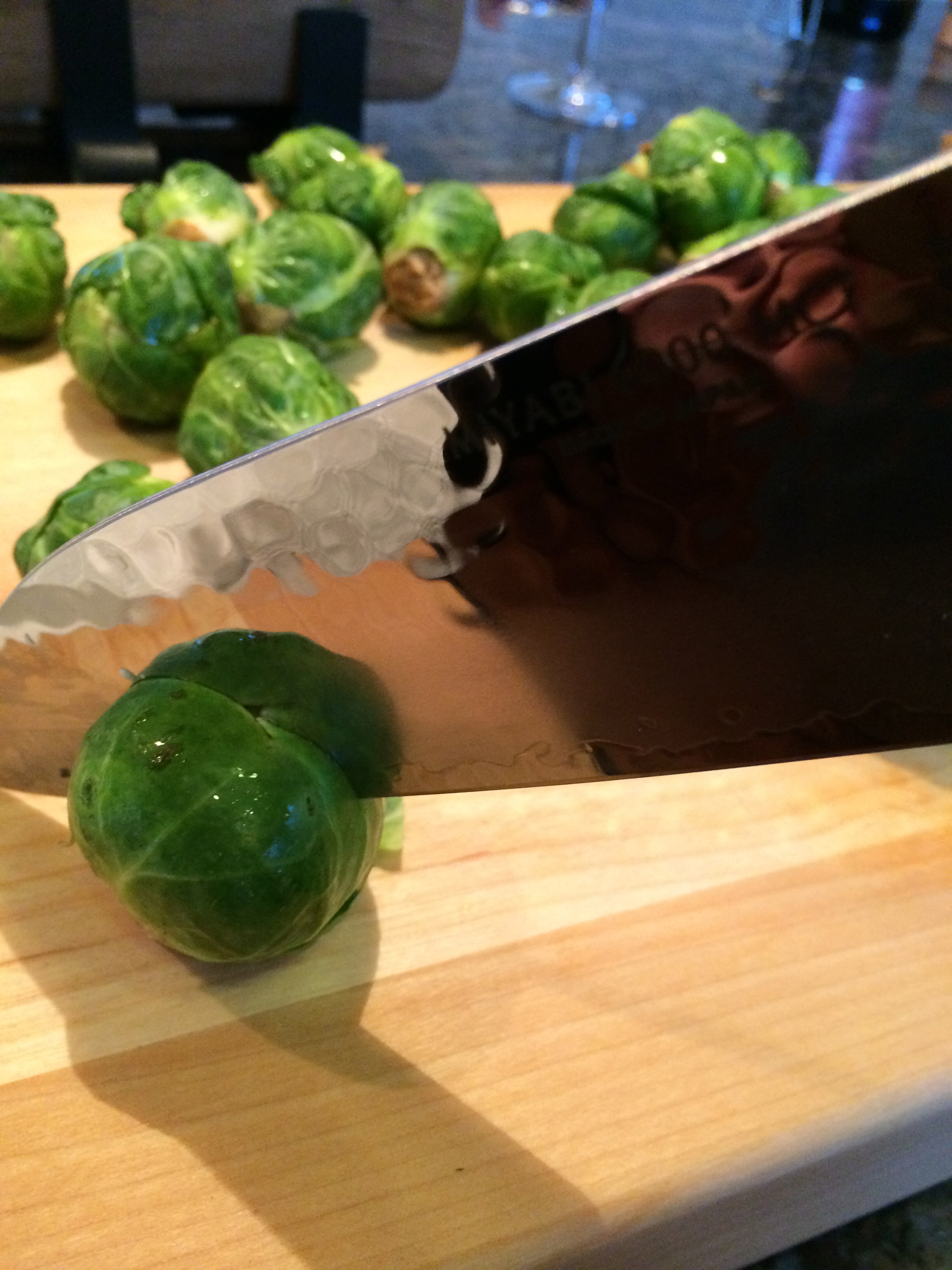 On the morning (or a few hours) before you make your steak, you’ll want to marinate the steak. The longer you marinate it (within reason), the juicier the steak will be. However, if you really want to make this, and only have a few hours, don’t freak out. A few hours of marinating is enough to ensure a delicious meal, especially if you’re working with a nice piece of steak. Start by taking out your tri tip, putting it in a small, shallow dish, and covering it with the garlic and the orange juice concentrate.  (You can also use a large, resealable bag that everyone calls by its brand name, but I am trying not to) The orange juice concentrate really tenderizes the meat and leaves it with a slight citrus flavor, which is absolutely delightful.  It also makes the steak a little more forgiving for any grilling errors, whether they be owing to forgetfulness, being new to grilling, or (as most grilling errors are) beverage enhancements.IMG_3734 IMG_3736 IMG_3739 IMG_3741 After your steak is cloaked in garlic and frozen orange juice concentrate, cover with plastic-wrap and put in the fridge.  Marinate between 4-12 hours. If you have the time, flip the meat halfway through the marinade to make sure both side of the steak are tenderized. When you’re ready to cook the steak, the first thing you’ll do is make sure your grill is ready. We use a gas grill, so it’s essential that we have adequate amounts of propane (not that we’ve ever made that mistake… multiple times… )  Make sure your grill is clean and hot. Start by turning your grill on, and heating it on high with the lid closed. IMG_3855 We use a small gas grill, and it gets very hot very quickly. Heat the grill for 5-10 minutes. Open the grill, and using a heavy wire brush cleaner, brush the grates and remove any remnants of former meals and grease. After the grill is clean, heat it to 400 degrees and give it a couple minutes to stabilize at that temperature. IMG_3858 While the grill is heating, start preparing the brussels sprouts. First, heat the oven to 450 degrees. Then, wash the sprouts: IMG_3744 After you wash the sprouts, lay them on a paper towel to dry. Cover them with another paper towel and get the sprouts as dry as possible. IMG_3745 Move the brussels sprouts to a cutting board, and cut them up. First, start by cutting off the inedible bottom parts. If the sprouts are small, just cut the remainder of each in half. If the sprouts are big, cut them in four pieces. IMG_3747 Throw the sprouts in a big, oven safe dish that is large enough to accommodate all the sprouts in one layer (or they will never cook).IMG_3749 Cut up the pancetta. Pancetta is italian bacon and it is so good. IMG_3750 Toss the pancetta with the brussels sprouts IMG_3752 Cover the sprouts with 1 Tb. of olive oil, 1 tsp. of kosher salt, and 1/2 tsp. of freshly ground black pepper. IMG_3753 IMG_3754 IMG_3756Toss the brussels to ensure that they’re all covered with the olive oil, seasoning and pancetta, and put in the 450 degree oven. Set a timer for 35 minutes. Stir every 10 minutes to make sure the brussels sprouts get crisp but don’t burn. Make sure that you take your steak out of the refrigerator and shake off the excess marinate at least a half hour before you grill it. You want the steak to come close to room temperature before you grill it. Before putting it on the grill, season the steak with the Worcestershire sauce, Tabasco, salt and pepperIMG_3758 When the grill is at 400 degrees, put the steak on the middle of the grates, between the front and back burners. The idea is the heat is a little less direct, and any fat that drips off won’t hit the flames underneath (and make them big flames ). IMG_3763 IMG_3781 Close the lid and grill for 12-16 minutes at 400 degrees, depending on the degree of pinkness you like in steak.  You will flip the steak the scientifically-proven optimum number of times to flip steak: ONCE.  In the interim, you should touch it the equally scientifically-proven optimum number of times to poke, prod, jiggle, or even stare at your steak with an overly judgmental glare: no times.   If you are the impatient type, grab a glass of wine and enjoy a beautiful evening.   If your father-in-law is the impatient type, and has to be chased away from the grill, grab a bottle of wine and walk about pointing at things in the backyard that you will improve “someday.”  But don’t ever give up the pink flamingos.IMG_3785   This thing can stay too.IMG_3767 While the steak is cooking, give the brussels a stir. IMG_3759 After 12 minutes on the grill, flip your steak. When you flip your steak it will look something like this: IMG_3789 After you flip the steak, close the lid and grill at 400 degrees for 10-14 more minutes. While the steak is cooking, move back to the kitchen and check on the brussels. They should be done after cooking for about 35 minutes. At that time, pull the brussels out of the oven using oven mits, and if you would like a little more decadence, using a microplane grater, grate some Parmigiano-Reggiano or Peccorino cheese over the brussels sprouts. IMG_3761 IMG_3762 Right about when you pull your brussels out of the oven, your steak will be ready. Turn off the oven, and put the brussels back in to keep them warm. Go to your grill and place your steak on a cutting board. IMG_3793 After the ten minutes, the steak will be medium rare. Let the steak rest for 10 minutes before cutting it. While it’s resting, top with the 1/4 cup of blue cheese. IMG_3794 After letting the steak sit for ten minutes, cut it into serving sizes. This feeds two very hungry people, or four moderately hungry people. You can also use a bigger piece of meat with essentially no other changes to the recipe. After the steak’s rested, plate your steak.IMG_3799   Take the brusells out of the oven and spoon them onto plates. Enjoy!  Beverage enhancements optional. IMG_3802