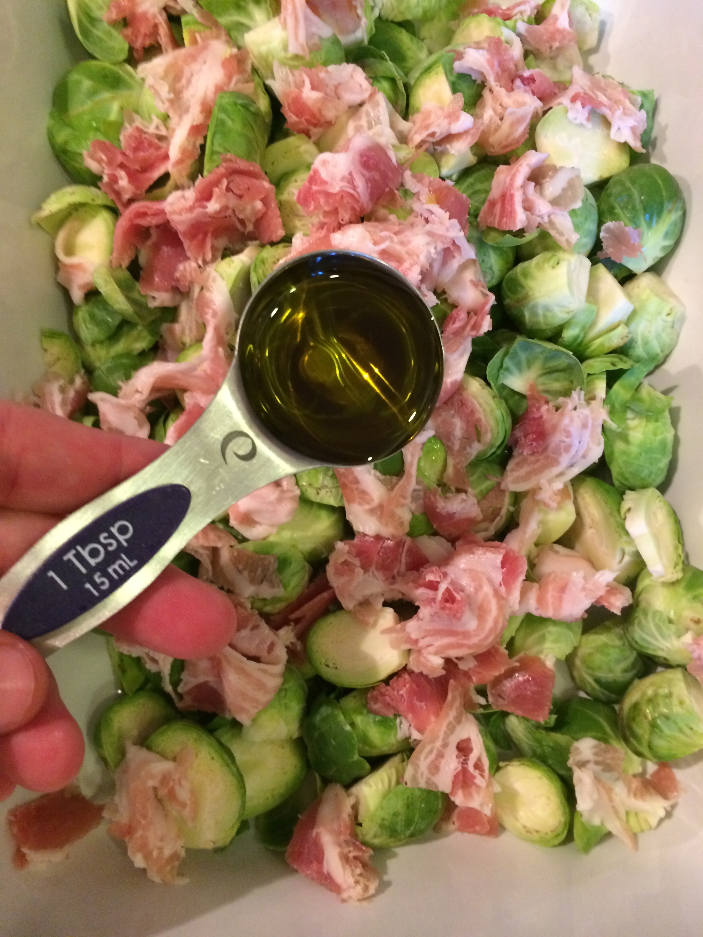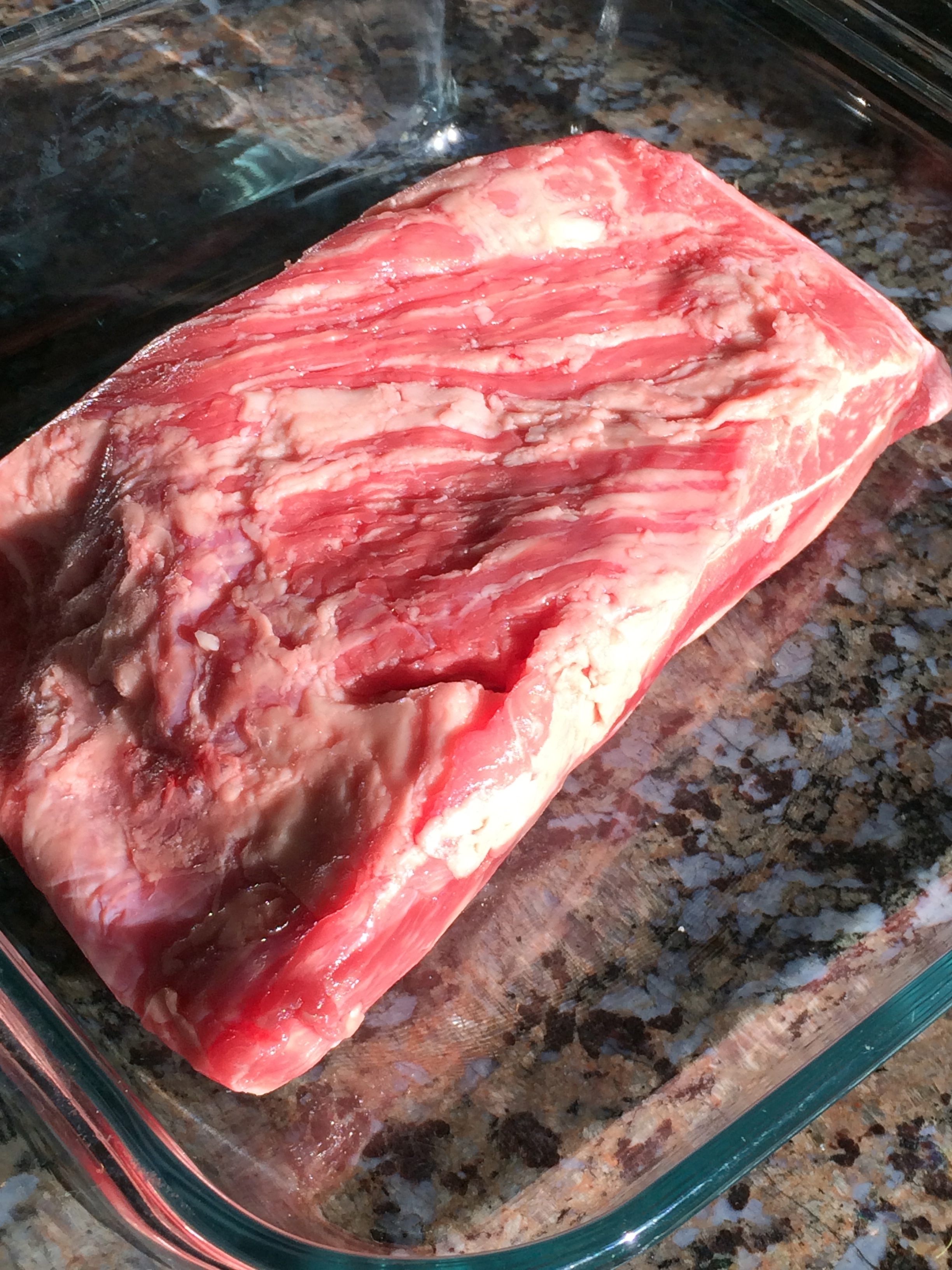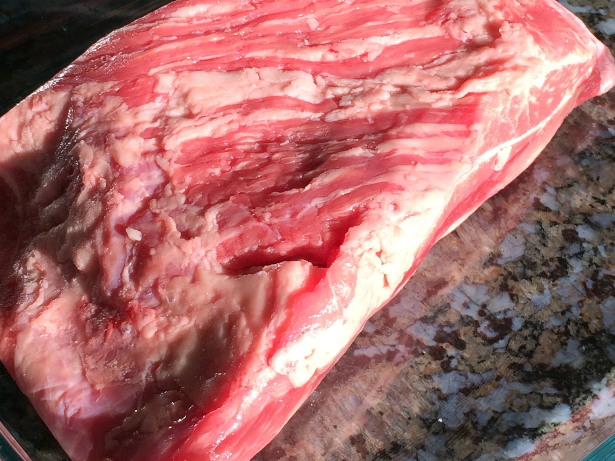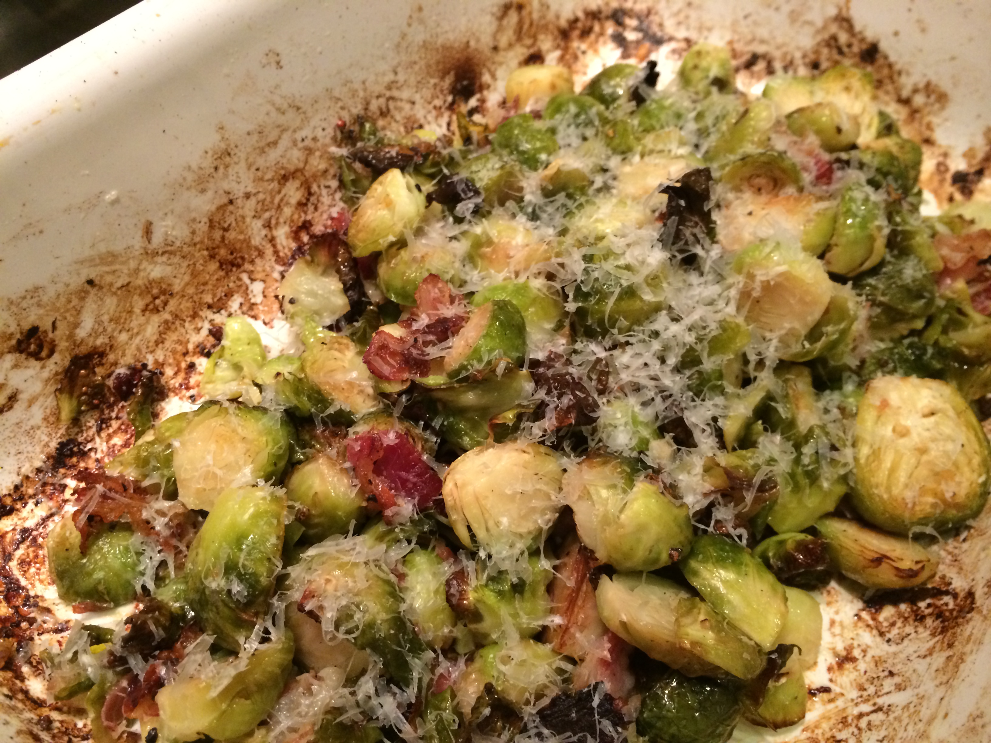 On the morning (or a few hours) before you make your steak, you’ll want to marinate the steak. The longer you marinate it (within reason), the juicier the steak will be. However, if you really want to make this, and only have a few hours, don’t freak out. A few hours of marinating is enough to ensure a delicious meal, especially if you’re working with a nice piece of steak. Start by taking out your tri tip, putting it in a small, shallow dish, and covering it with the garlic and the orange juice concentrate.  (You can also use a large, resealable bag that everyone calls by its brand name, but I am trying not to) The orange juice concentrate really tenderizes the meat and leaves it with a slight citrus flavor, which is absolutely delightful.  It also makes the steak a little more forgiving for any grilling errors, whether they be owing to forgetfulness, being new to grilling, or (as most grilling errors are) beverage enhancements.IMG_3734 IMG_3736 IMG_3739 IMG_3741 After your steak is cloaked in garlic and frozen orange juice concentrate, cover with plastic-wrap and put in the fridge.  Marinate between 4-12 hours. If you have the time, flip the meat halfway through the marinade to make sure both side of the steak are tenderized. When you’re ready to cook the steak, the first thing you’ll do is make sure your grill is ready. We use a gas grill, so it’s essential that we have adequate amounts of propane (not that we’ve ever made that mistake… multiple times… )  Make sure your grill is clean and hot. Start by turning your grill on, and heating it on high with the lid closed. IMG_3855 We use a small gas grill, and it gets very hot very quickly. Heat the grill for 5-10 minutes. Open the grill, and using a heavy wire brush cleaner, brush the grates and remove any remnants of former meals and grease. After the grill is clean, heat it to 400 degrees and give it a couple minutes to stabilize at that temperature. IMG_3858 While the grill is heating, start preparing the brussels sprouts. First, heat the oven to 450 degrees. Then, wash the sprouts: IMG_3744 After you wash the sprouts, lay them on a paper towel to dry. Cover them with another paper towel and get the sprouts as dry as possible. IMG_3745 Move the brussels sprouts to a cutting board, and cut them up. First, start by cutting off the inedible bottom parts. If the sprouts are small, just cut the remainder of each in half. If the sprouts are big, cut them in four pieces. IMG_3747 Throw the sprouts in a big, oven safe dish that is large enough to accommodate all the sprouts in one layer (or they will never cook).IMG_3749 Cut up the pancetta. Pancetta is italian bacon and it is so good. IMG_3750 Toss the pancetta with the brussels sprouts IMG_3752 Cover the sprouts with 1 Tb. of olive oil, 1 tsp. of kosher salt, and 1/2 tsp. of freshly ground black pepper. IMG_3753 IMG_3754 IMG_3756Toss the brussels to ensure that they’re all covered with the olive oil, seasoning and pancetta, and put in the 450 degree oven. Set a timer for 35 minutes. Stir every 10 minutes to make sure the brussels sprouts get crisp but don’t burn. Make sure that you take your steak out of the refrigerator and shake off the excess marinate at least a half hour before you grill it. You want the steak to come close to room temperature before you grill it. Before putting it on the grill, season the steak with the Worcestershire sauce, Tabasco, salt and pepperIMG_3758 When the grill is at 400 degrees, put the steak on the middle of the grates, between the front and back burners. The idea is the heat is a little less direct, and any fat that drips off won’t hit the flames underneath (and make them big flames ). IMG_3763 IMG_3781 Close the lid and grill for 12-16 minutes at 400 degrees, depending on the degree of pinkness you like in steak.  You will flip the steak the scientifically-proven optimum number of times to flip steak: ONCE.  In the interim, you should touch it the equally scientifically-proven optimum number of times to poke, prod, jiggle, or even stare at your steak with an overly judgmental glare: no times.   If you are the impatient type, grab a glass of wine and enjoy a beautiful evening.   If your father-in-law is the impatient type, and has to be chased away from the grill, grab a bottle of wine and walk about pointing at things in the backyard that you will improve “someday.”  But don’t ever give up the pink flamingos.IMG_3785   This thing can stay too.IMG_3767 While the steak is cooking, give the brussels a stir. IMG_3759 After 12 minutes on the grill, flip your steak. When you flip your steak it will look something like this: IMG_3789 After you flip the steak, close the lid and grill at 400 degrees for 10-14 more minutes. While the steak is cooking, move back to the kitchen and check on the brussels. They should be done after cooking for about 35 minutes. At that time, pull the brussels out of the oven using oven mits, and if you would like a little more decadence, using a microplane grater, grate some Parmigiano-Reggiano or Peccorino cheese over the brussels sprouts. IMG_3761 IMG_3762 Right about when you pull your brussels out of the oven, your steak will be ready. Turn off the oven, and put the brussels back in to keep them warm. Go to your grill and place your steak on a cutting board. IMG_3793 After the ten minutes, the steak will be medium rare. Let the steak rest for 10 minutes before cutting it. While it’s resting, top with the 1/4 cup of blue cheese. IMG_3794 After letting the steak sit for ten minutes, cut it into serving sizes. This feeds two very hungry people, or four moderately hungry people. You can also use a bigger piece of meat with essentially no other changes to the recipe. After the steak’s rested, plate your steak.IMG_3799   Take the brusells out of the oven and spoon them onto plates. Enjoy!  Beverage enhancements optional. IMG_3802