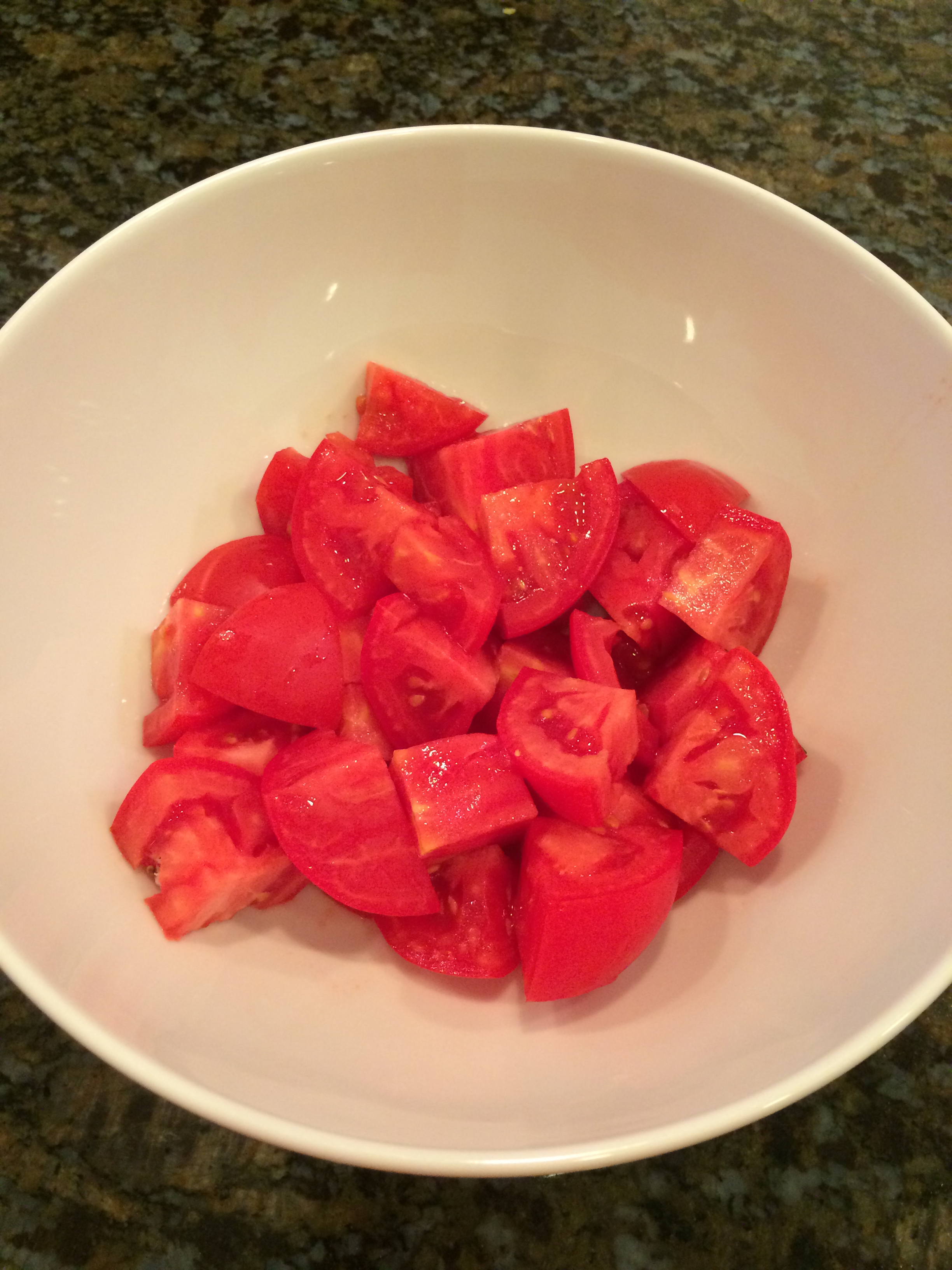 Place your packet in the 400 degree oven, and set the timer fro 25 minutes. While the salmon is baking, you will chop your tomatoes and sauté your baby kale.