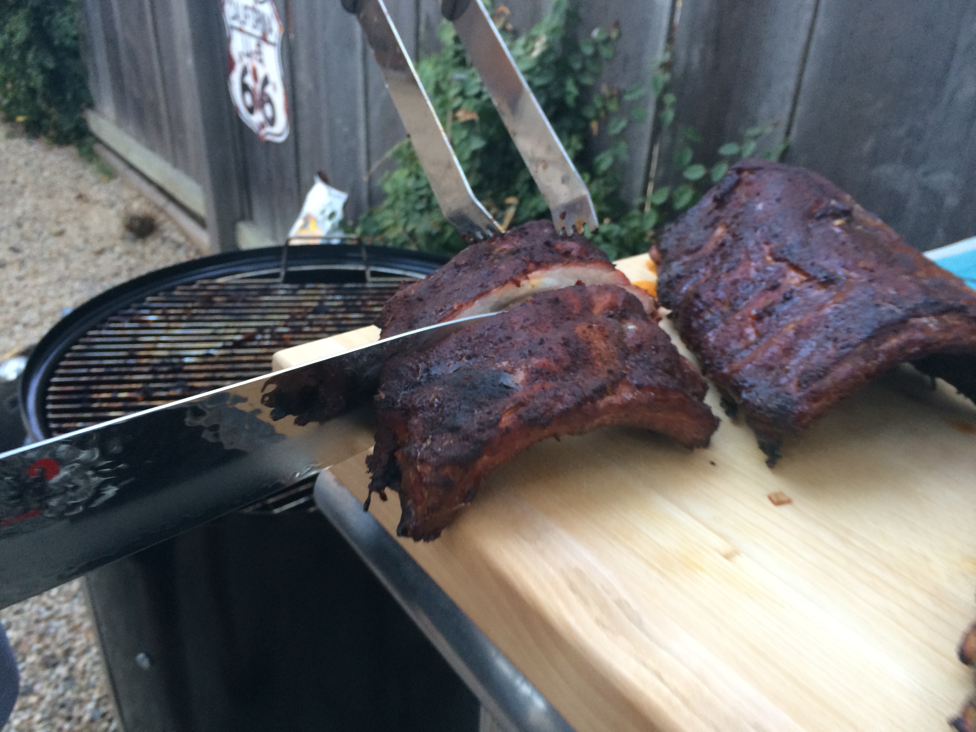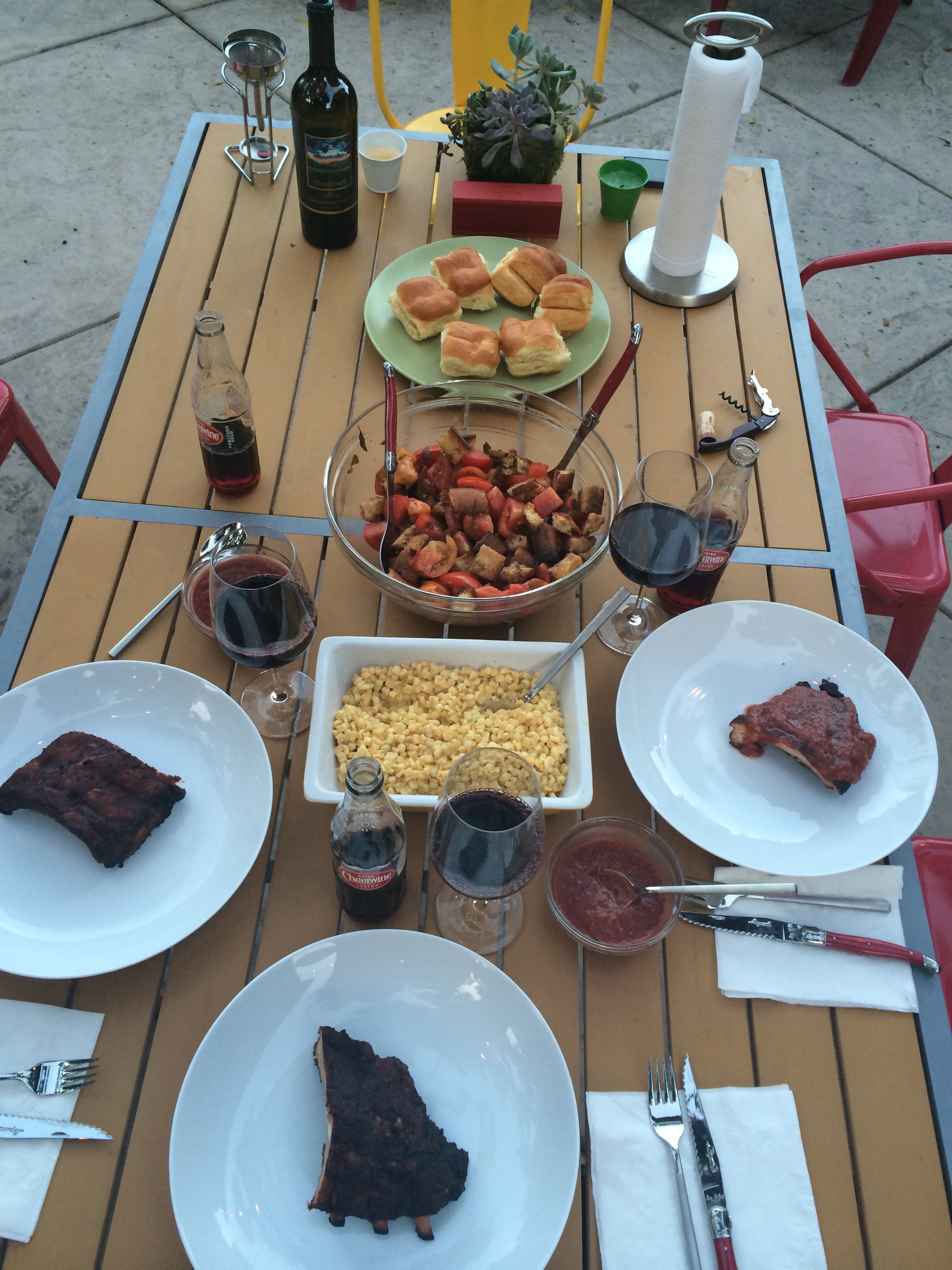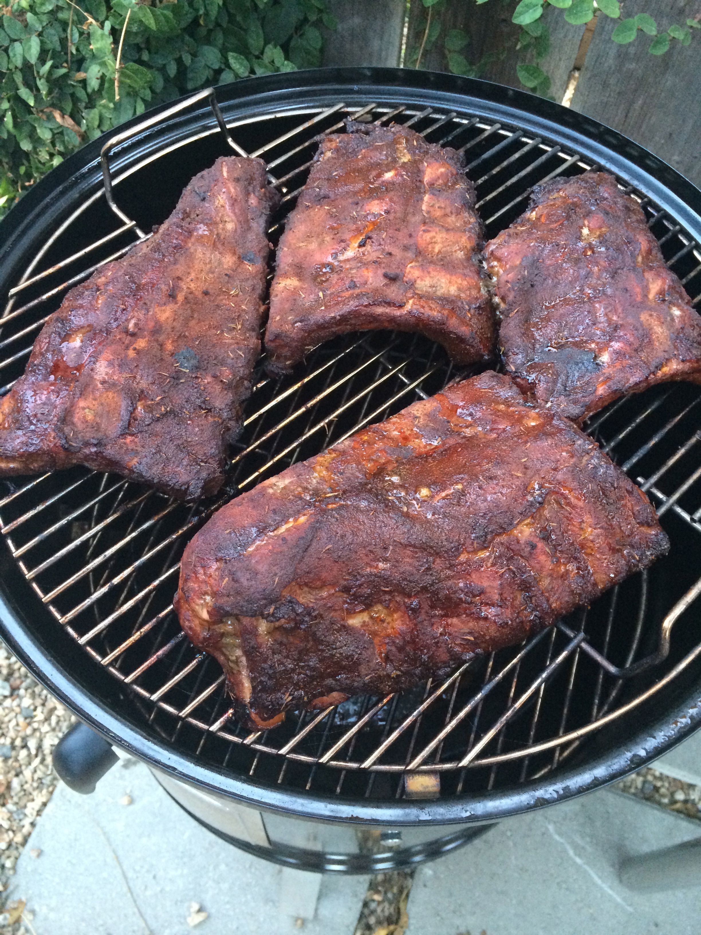 This meal was incredible — we smoked some ribs, made with a rub and a spicy plum sauce from Weber’s Way To Grill, which is an absolutely fantastic grilling manifesto. I love inventing my own recipes, but it’s also fun and instructive to learn from other people who make delicious items. Smoking the ribs makes them super succulent, and the sauce is just really good. It cuts through a hot night like nothing else.