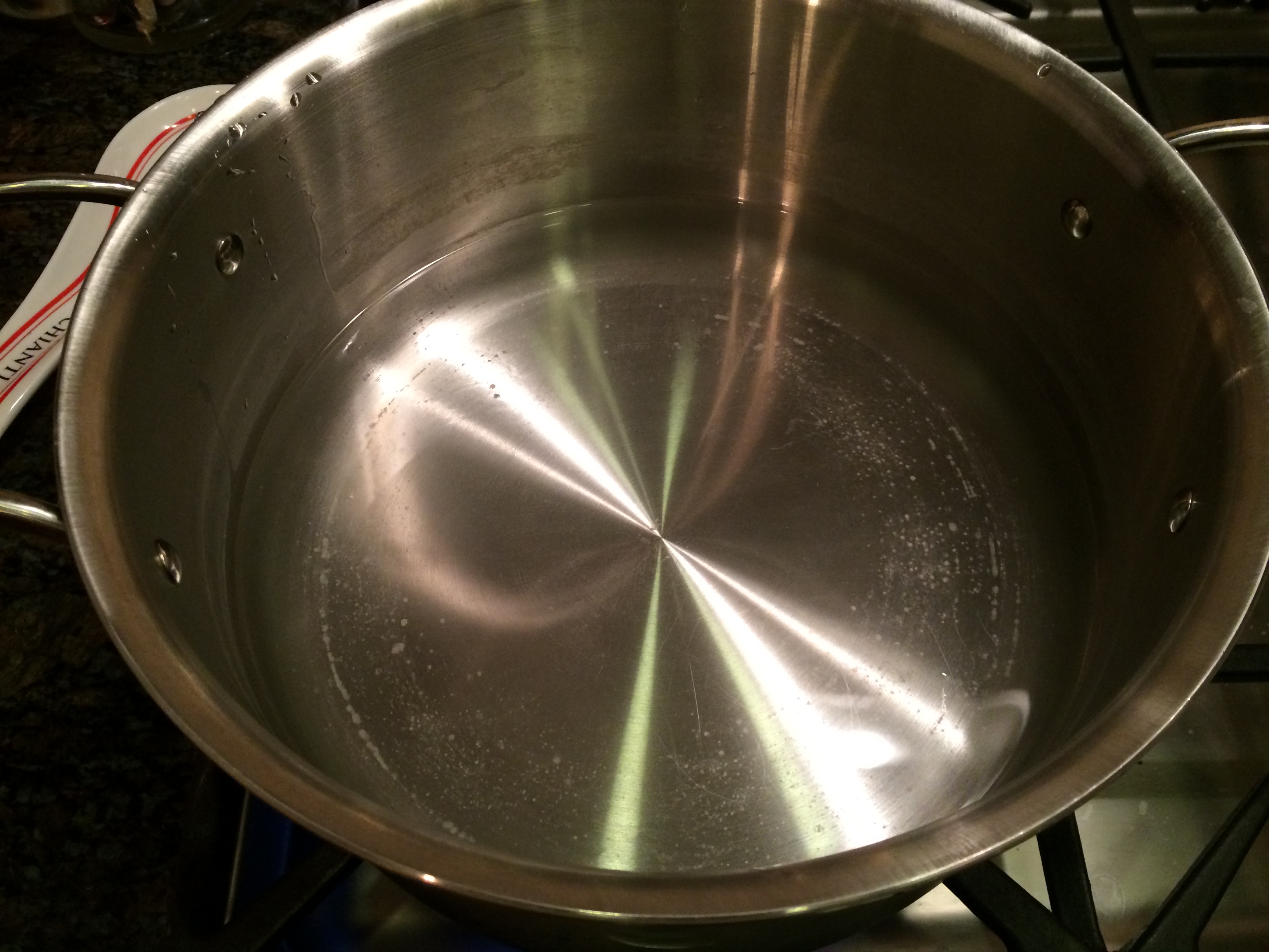 Then, put a large pot on the stove with about 5 inches of water, and bring to a boil.