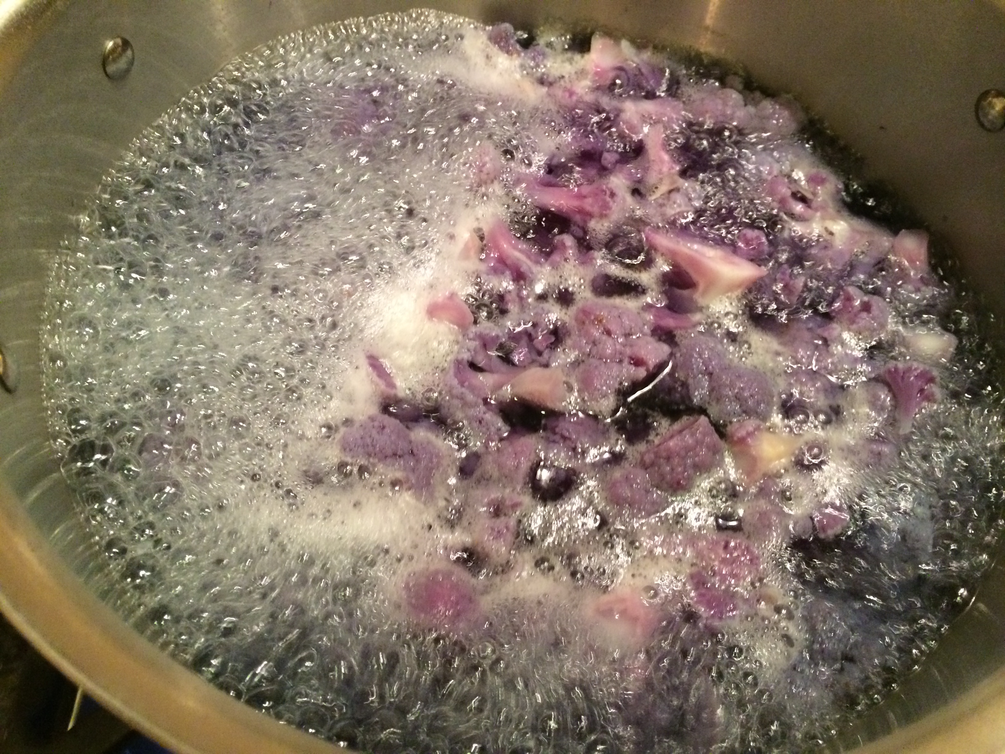 If the water is boiling, add the cauliflower to the water, and boil for about 5 minutes.