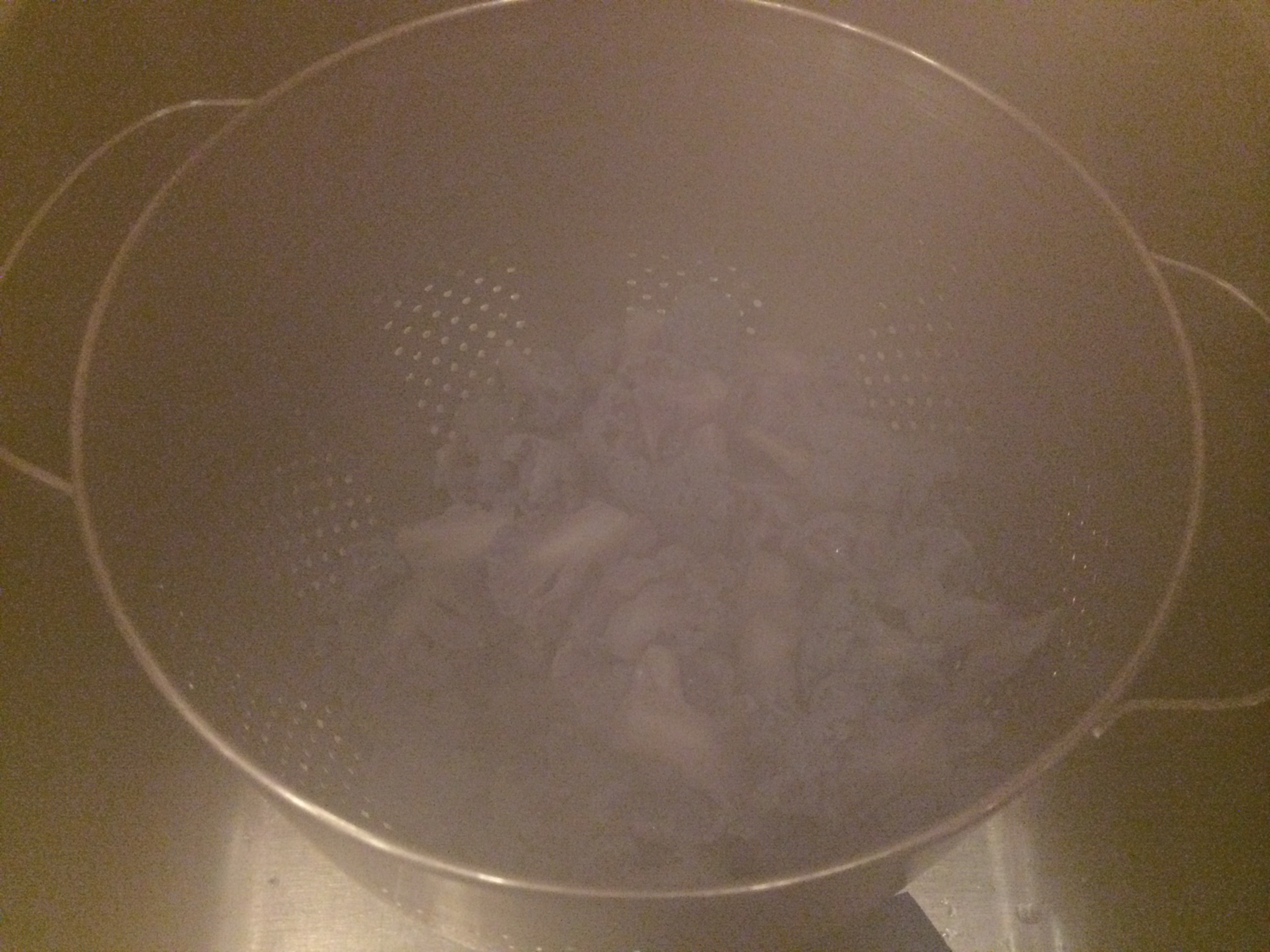 Don’t forget about the cauliflower. After five minutes of boiling, check one small piece of cauliflower for done-ness (don’t use your fingers, that water is hot…). If it’s cooked, drain the cauliflower in a colander in the sink, just like you’d drain pasta (you can even rinse it with cold water to stop the cooking, if you’d like.) Leave the cauliflower in the colander until your sauce is ready.