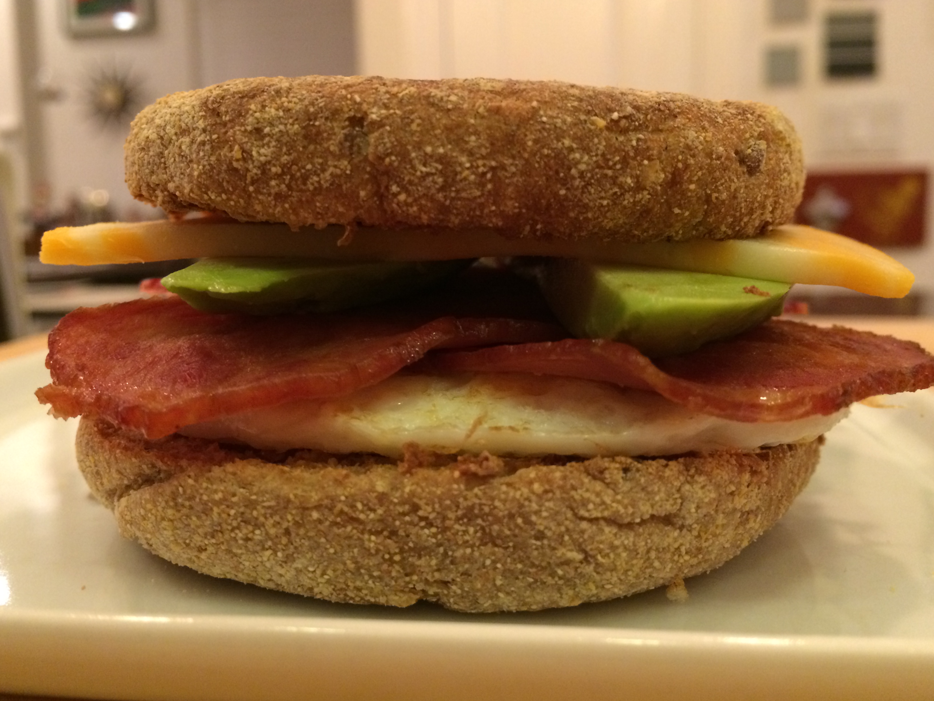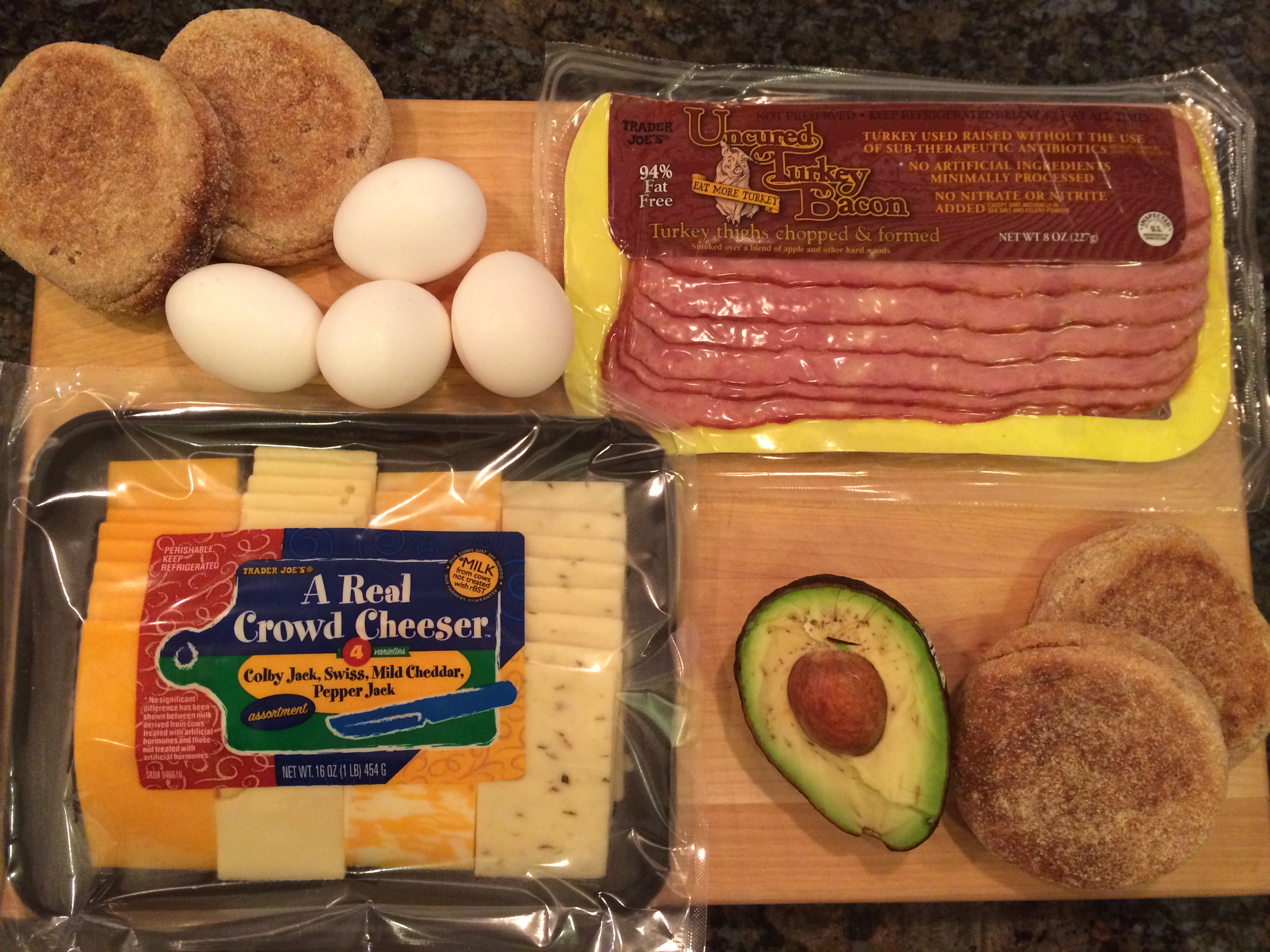 I prepare each element of a turkey bacon breakfast sandwich on a Sunday night, let it cool, and then package it all up separately. In the morning, all I have to do it put the pieces together. It’s delicious, it’s nutritious, and it’s expeditious!
