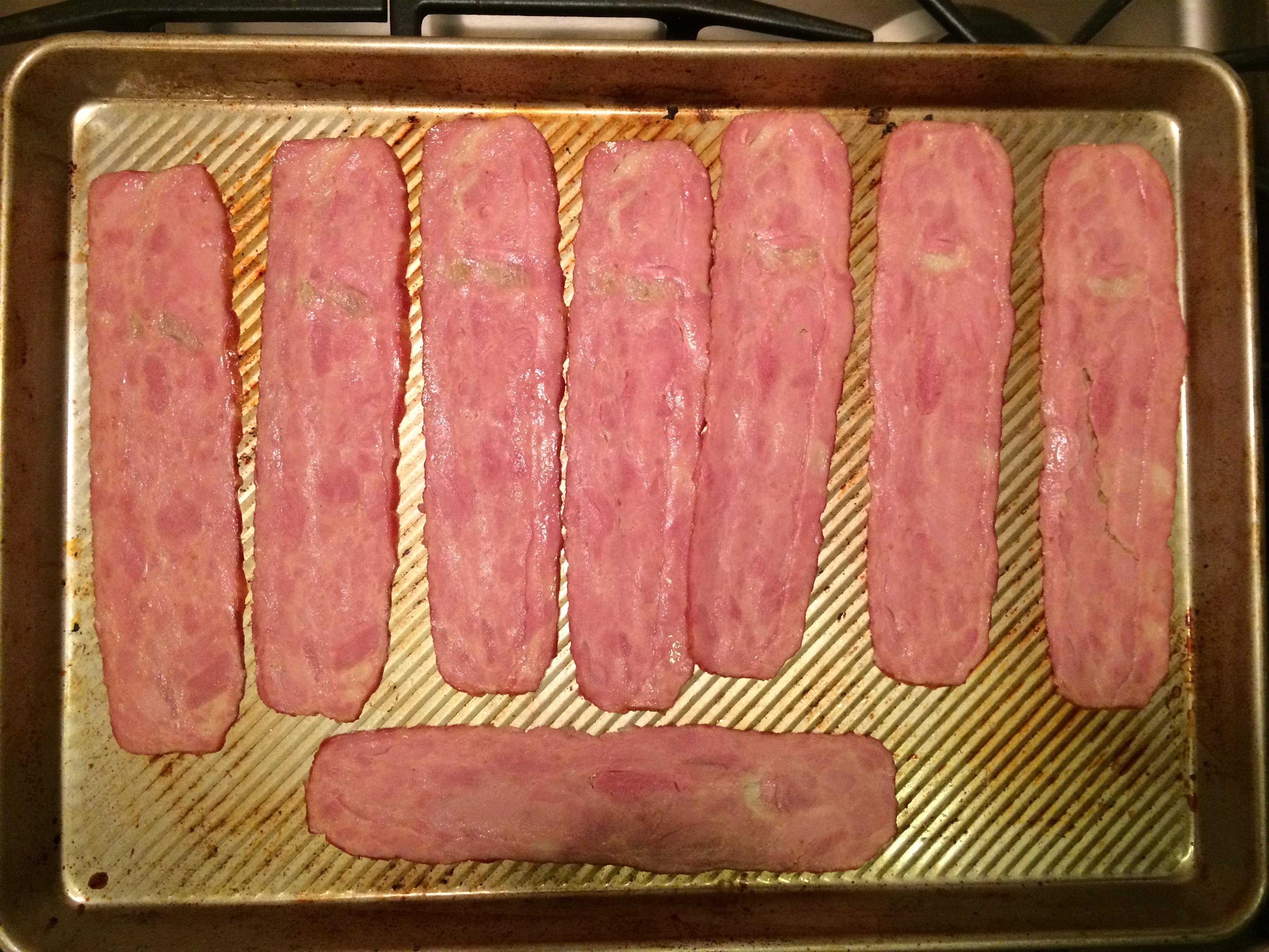 I use turkey bacon because it’s much better for you than regular bacon, but it’s still really good. You can see that I forgot to put down aluminum foil in the above photo. You don’t need to use the foil, but it does make clean up a lot easier.