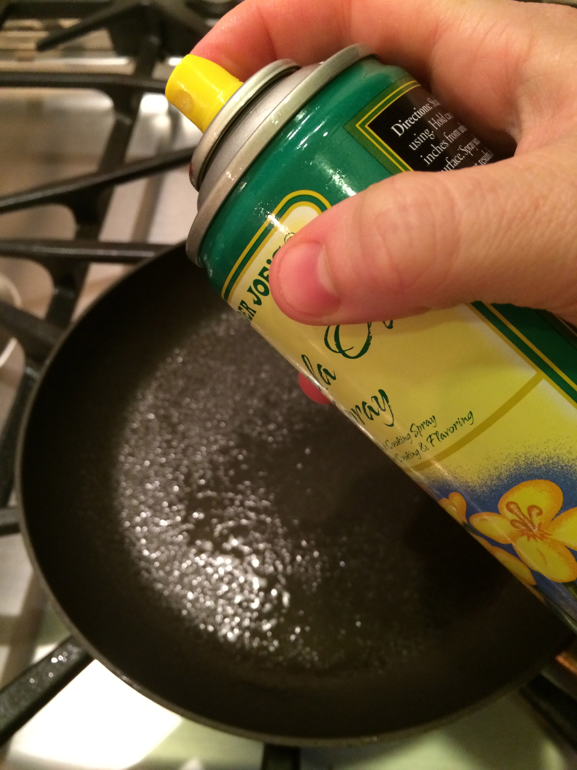 While the turkey is cooking, you can prepare your egg whites. Egg whites are delicious, and according to the internet, contain no cholesterol. I also feel like they keep longer than the whole egg, but I don’t have anything proving that. Place a nonstick pan on the stove top, and heat to medium high. Coat with some oil, and let heat for about 45 seconds.