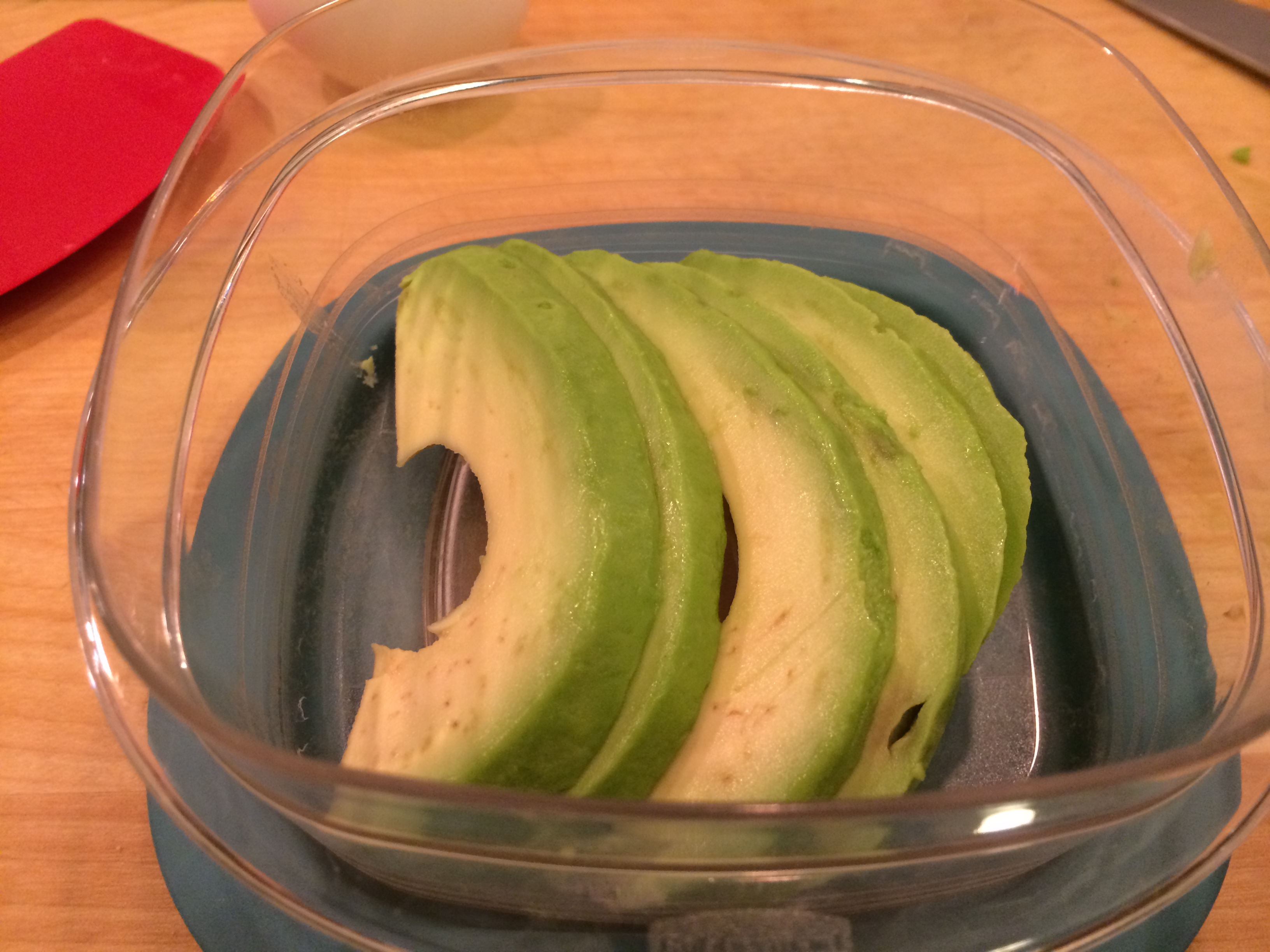 After you cook the egg whites, cut up an avocado, and put it in tupperware.