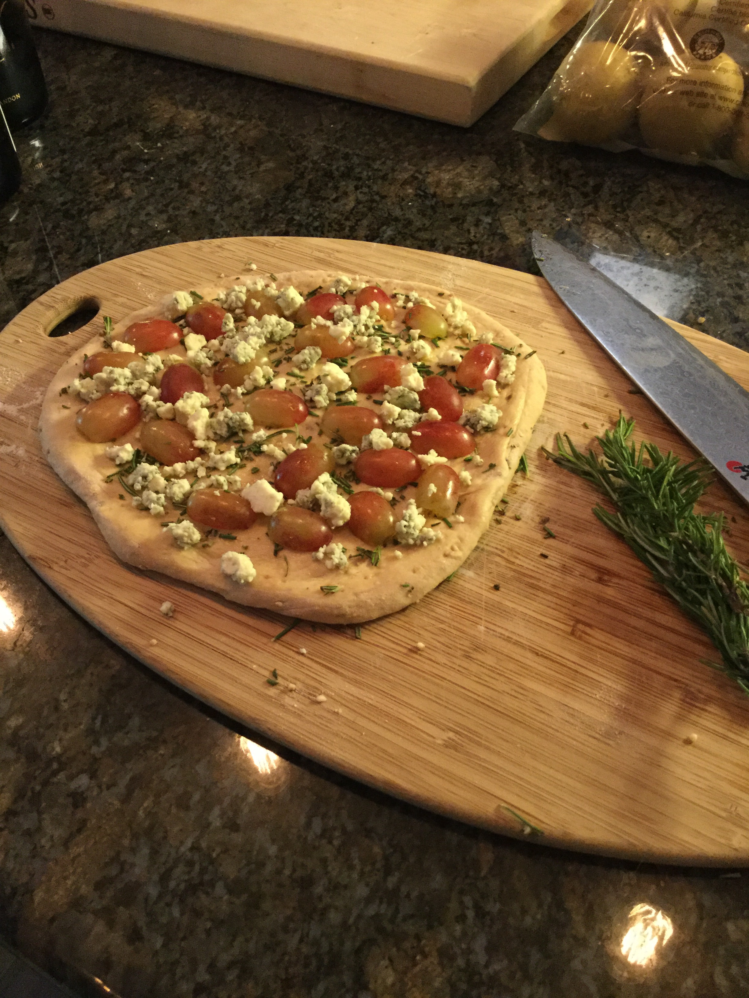 Snack 2 – Rosemary Flatbread with Blue Cheese, Grapes, and Honey